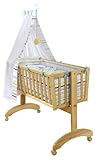 roba 8946 V55 - Komplettwiegenset, neu mit Flachstäben, bestehend aus Wiege, Vliesmatratze, Kinderbettgarnitur Bettwäsche, gepolsterter Einhang, Baby-Inlett-Set, Himmelstange und Himmel, mit Wiegefunktion und Feststellknopf Maße 90 x 40 cm